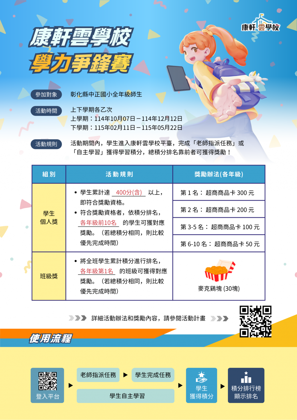 <中正國小-康軒雲-學力爭鋒賽>獎品豐富,歡迎參加~~~